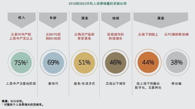 報告指出,崛起的上層中產(chǎn)和富裕階層、新世代年輕人的全新消費習慣和線上線下全渠道的普及這三大新興消費驅(qū)動力,將推動1.8萬億美元的消費增長。