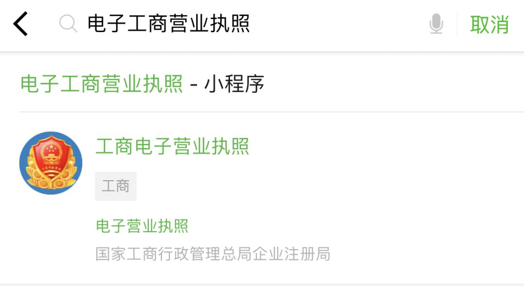 這就是微信電子營(yíng)業(yè)執(zhí)照小程序的界面了。