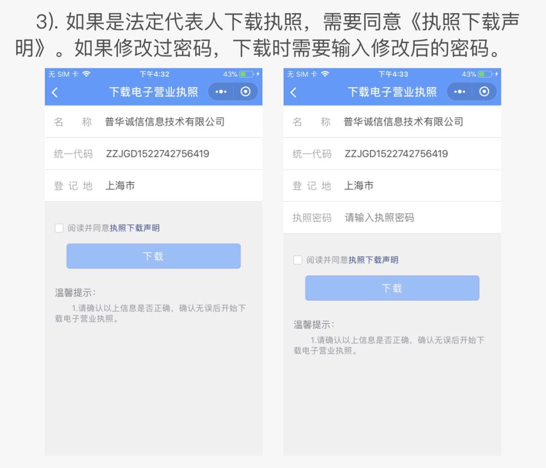 企業(yè)的法定代表人是電子營(yíng)業(yè)執(zhí)照的默認(rèn)領(lǐng)取人。手機(jī)版電子營(yíng)業(yè)執(zhí)照的首次領(lǐng)取只能由企業(yè)法定代表人通過手機(jī)等移動(dòng)端完成。企業(yè)法定代表人領(lǐng)取手機(jī)版電子營(yíng)業(yè)執(zhí)照后,可自行或授權(quán)證件管理人員保管,持有,使用電子營(yíng)業(yè)執(zhí)照。企業(yè)法定代表人或者證件管理人員可授權(quán)辦事人持電子營(yíng)業(yè)執(zhí)照辦理相關(guān)的政務(wù),商務(wù),公共服務(wù)等業(yè)務(wù)。證照管理員和辦事人經(jīng)過授權(quán)后,可下載電子營(yíng)業(yè)執(zhí)照并使用。企業(yè)對(duì)于電子營(yíng)業(yè)執(zhí)照管理和授權(quán)使用的合法性,真實(shí)性,合理性等負(fù)責(zé)。