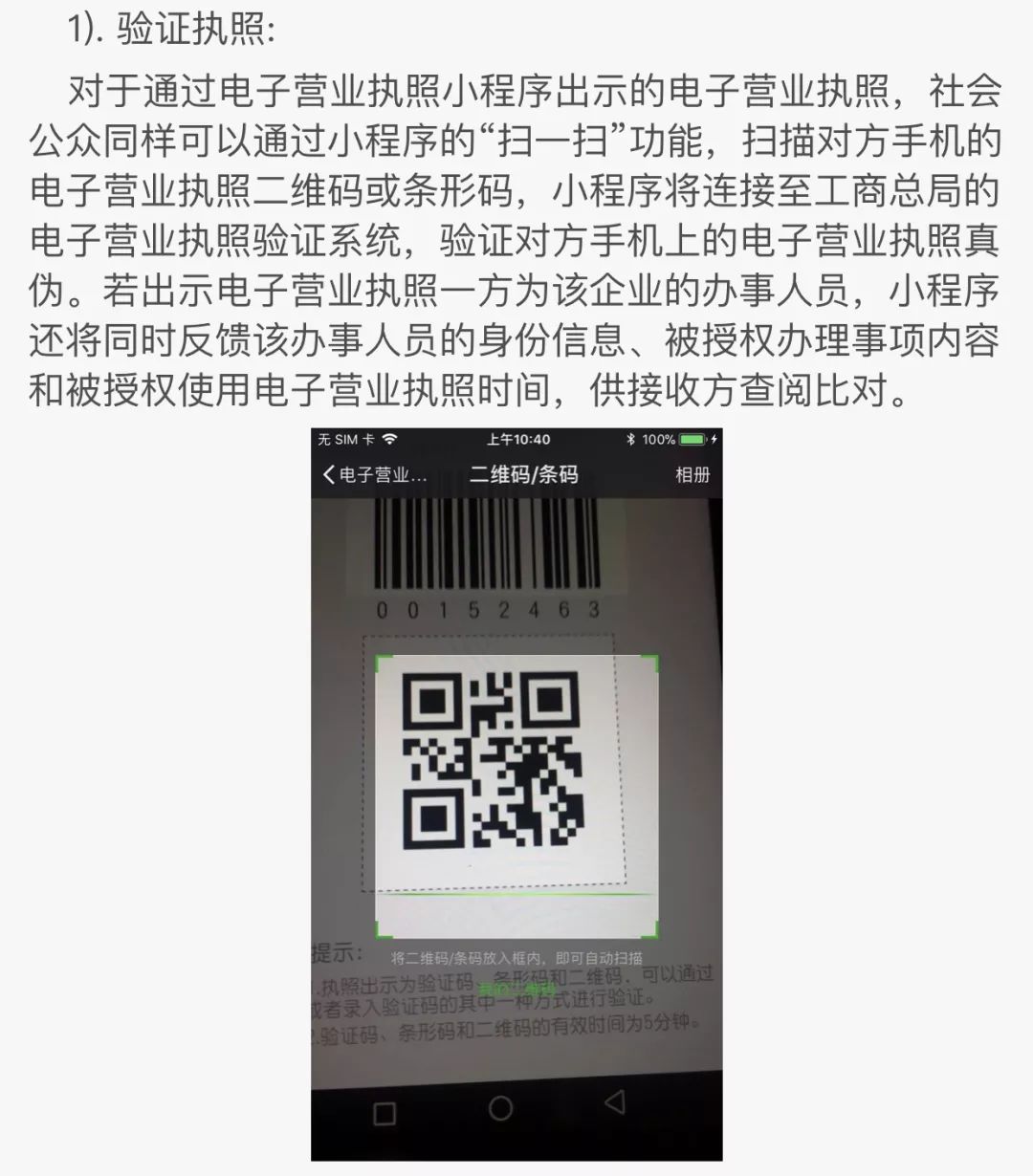 通過電子營(yíng)業(yè)執(zhí)照小程序,企業(yè)可以實(shí)現(xiàn)電子營(yíng)業(yè)執(zhí)照的出示,電子營(yíng)業(yè)執(zhí)照真?zhèn)涡则?yàn)證等功能。