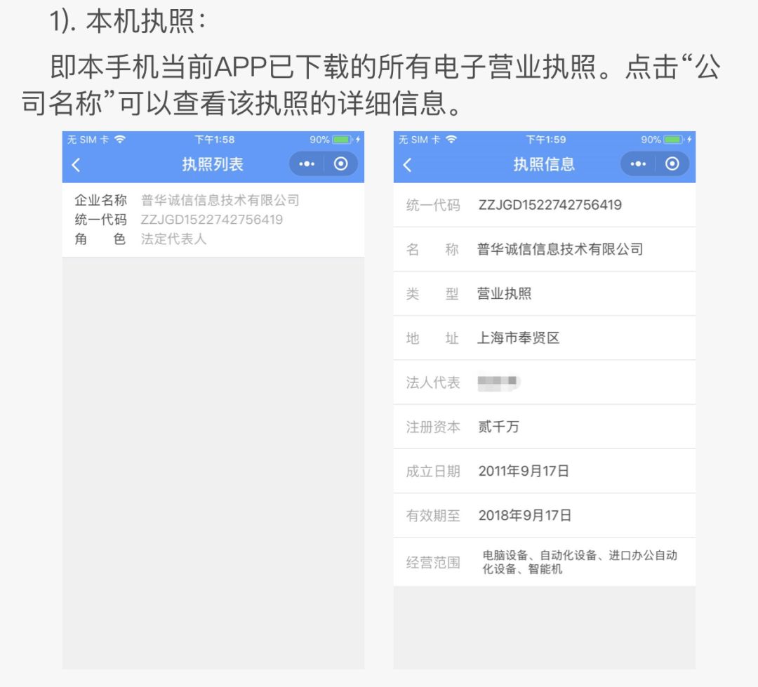 執(zhí)照空間主要有本機(jī)執(zhí)照,掛失執(zhí)照,修改密碼,刪除執(zhí)照等操作。