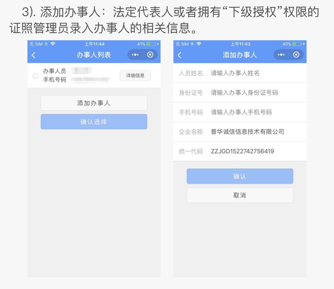 證照管理員:被法定代表人授權(quán)保管,持有,使用電子執(zhí)照的人員。