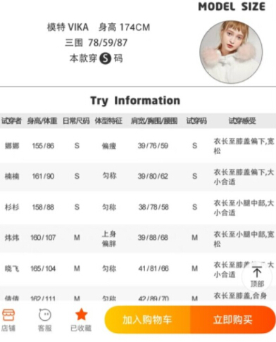 甚至像有一些服飾鞋包,如果沒有尺寸信息,買家網(wǎng)購根本就不敢買,會擔(dān)心買的不合適,到時候退貨更麻煩,所以如果你的產(chǎn)品有尺寸規(guī)格信息的我們一定要寫詳細(xì),這種情況下才能幫助你留下這個顧客在店鋪進(jìn)行成交,因為并不是所有買家都 喜歡咨詢客服,這邊可能就直接流失掉了很多顧客。除了模特之外,我們可以找?guī)讉€不同身高體重的去進(jìn)行試穿。那么可以讓更多的買家看到跟自己身高體重差不多的模特的穿著效果。如圖2: