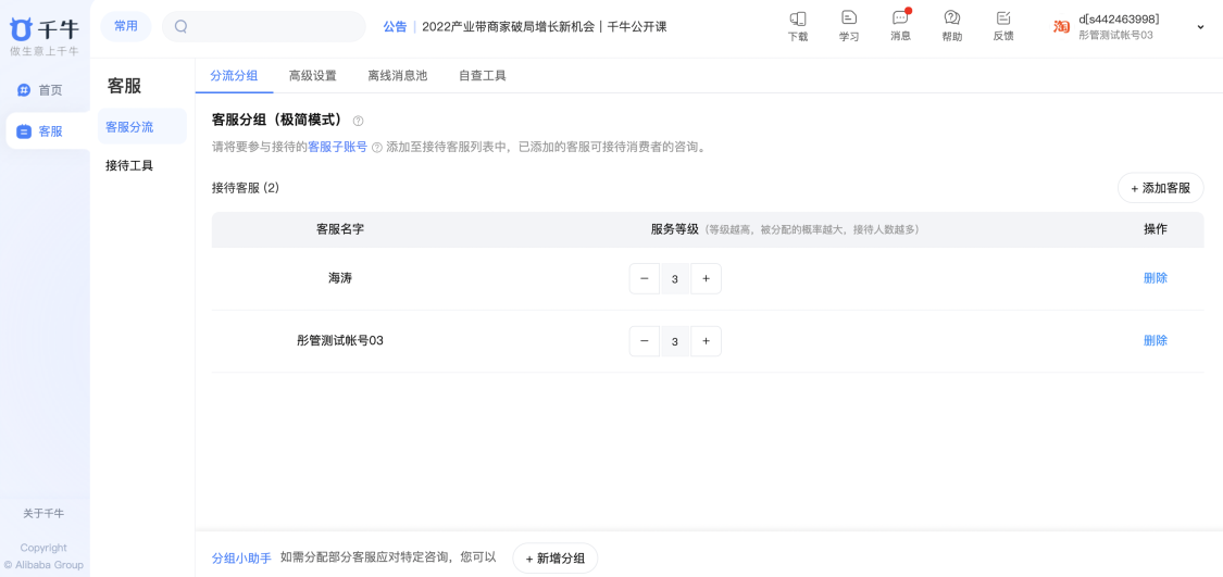 客服配置:客服分流 、接待工具